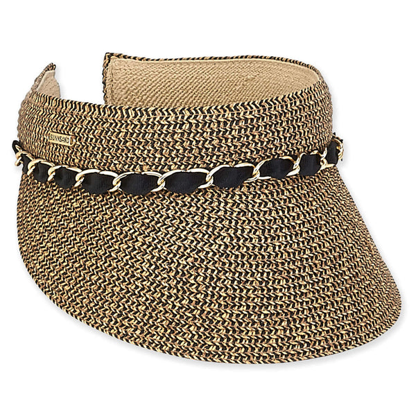 Sun N Sand 4.5" Paper Braided Bow Back Velcro Visor-Dark Tan with Black Trim
