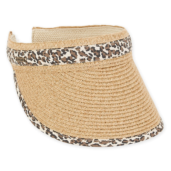 Sun N Sand Braided 4" Animal Printed Raffia Brim Velcro Visor-Grey