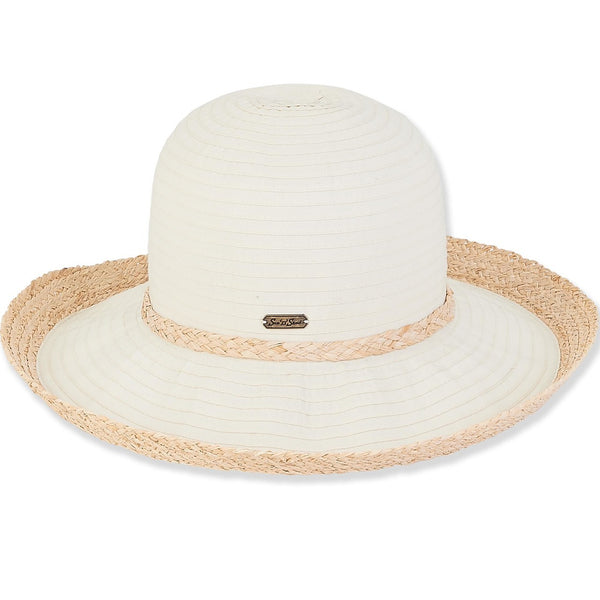 Sun N Sand Ribbon and Raffia Hat-White, Natural, and Black