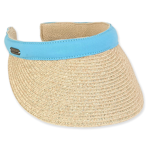 Sun N Sand Braided 3.5" Paper Braided Brim Clip On Animal Print Trim Visor-Tan or Black