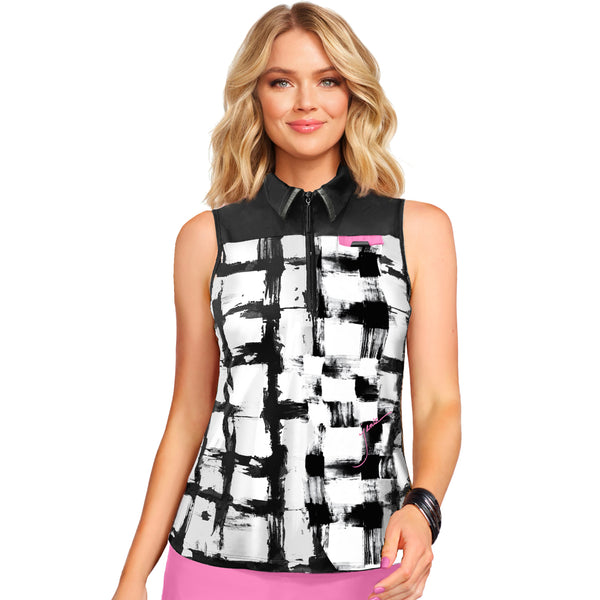 Jamie Sadock Black and White Collection: Canvas Mache Print Sleeveless Shirt