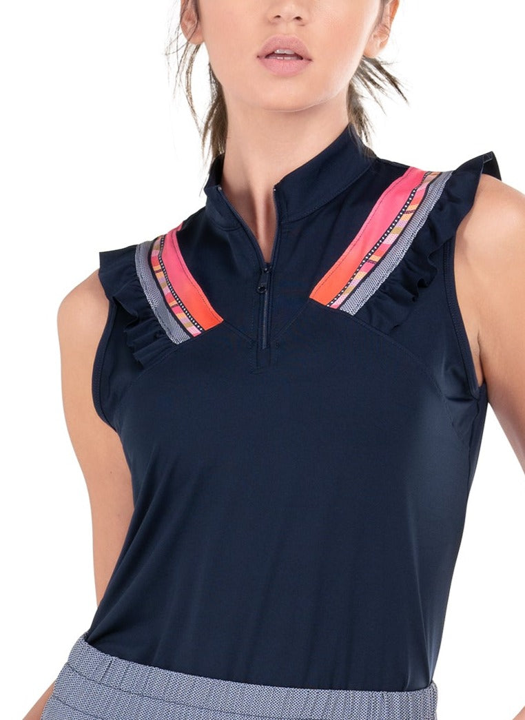 Lucky in Love PALM ISLAND COCO CHEVRON ZIP Sleeveless Shirt