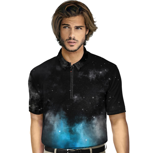 Jamie Sadock Mens Bull Print Golf Shirt-Black and Cyan