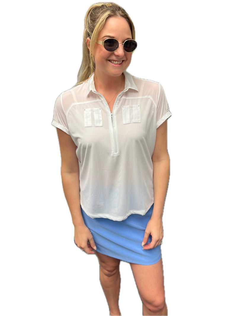 Jamie Sadock Spirit Collection: Mesh Short Sleeved Shirt-White