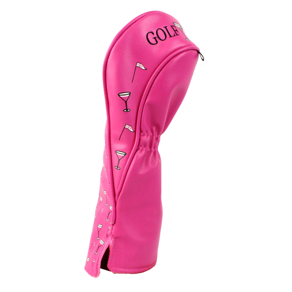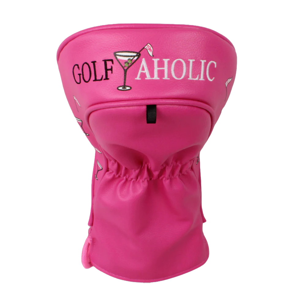 Add joy, Fun, and style to your daily life with these cute vinyl headcovers, Embroidered Golfaholic hole motif on Pink Vinyl Driver Cover, Be the envy of your friends, Cute gift item.