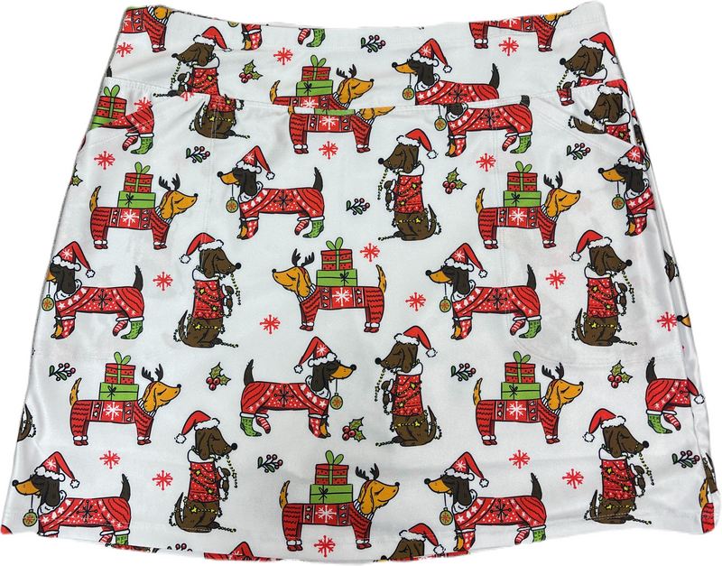 Bskinz Women's Knit Printed Stretch 18" Pull-On Skort- Santa's Helpers