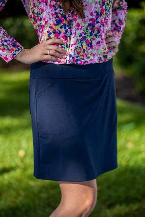 Bskinz Women's Solid Knit Stretch Pull-On 18" Skort- Navy Blue