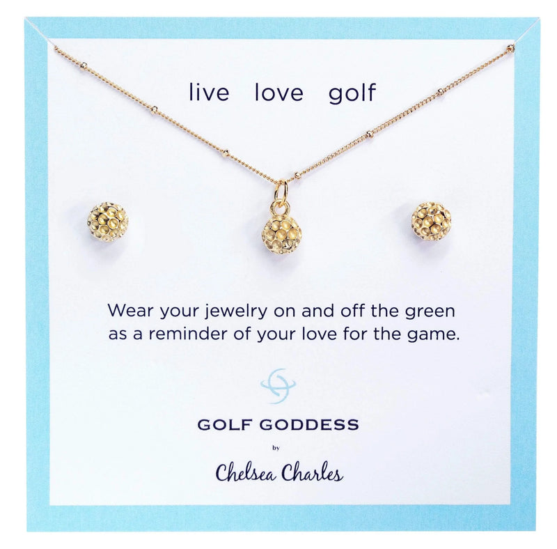 Chelsea Charles Golf Goddess Gold Golf Ball Necklace and Earrings Gift Set