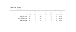 - Length of Skort graduates in length, Small -17" long, Medium-17.5" long, Large-18" long, XL-18.5" long