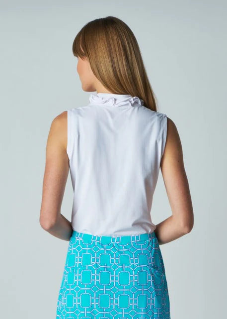 Gottex Double Ruffle Sleeveless Solid Polo-White