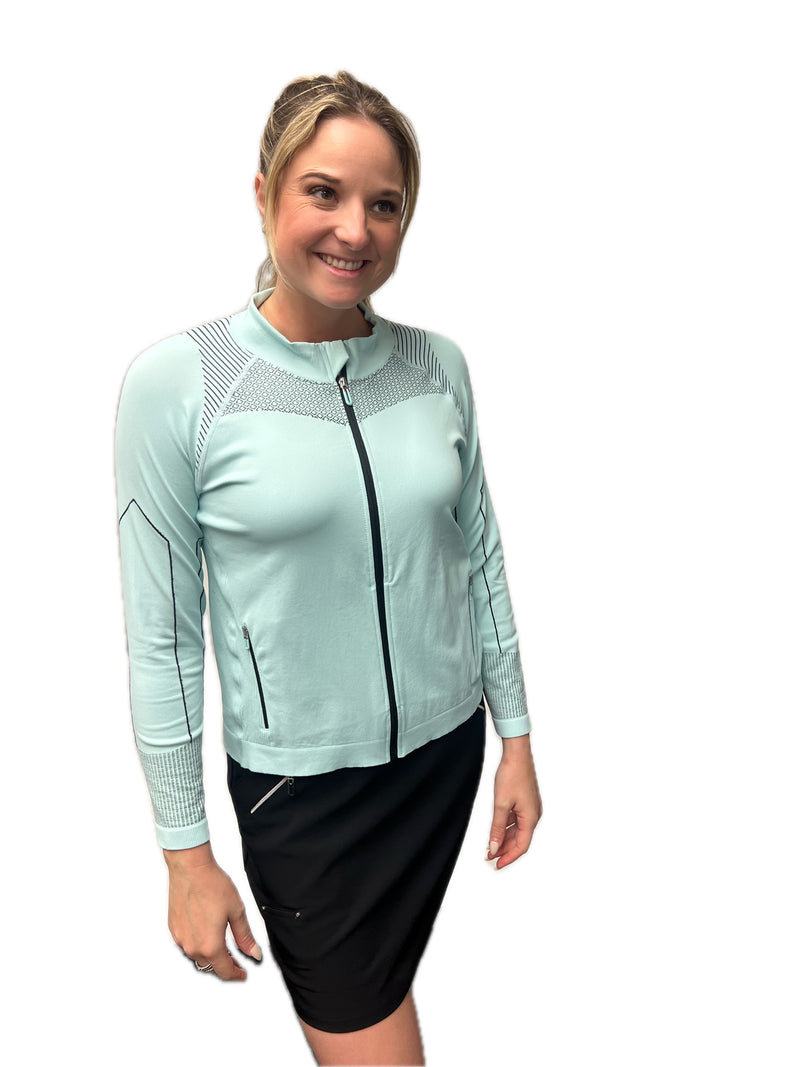 The Jamie Sadock Women's Full Zip Golf Sweater features a unique design of Style and Fashion.