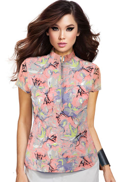 Jamie Sadock Shell Collection: Crackle Print Short Sleeved Shirt
