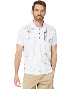 Jamie Sadock Spirit Mens Golf Print Golf Shirt-White All Over Flag Print