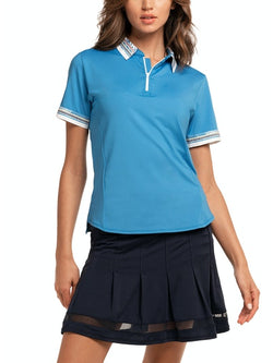 Lucky In Love Playing in Paradise Blue Trimmed Short Sleeved Shirt