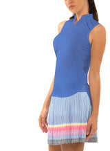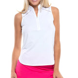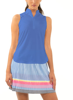 Lucky in Love Solid Charger Zip Placket with Mesh Sleeveless Shirt-Blue, Black, White, Navy